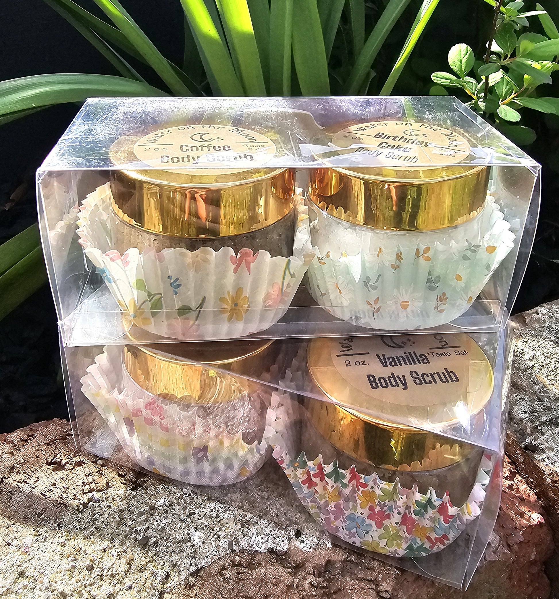 Transform your skin this summer with our Body Scrub Gift Set! Brighten and rejuvenate your skin with our exfoliating scrub, perfect for self-love and pampering. Treat yourself or a loved one to this ultimate gift set! Our Gift Sets come in 2 or 4 packs, each including a surprise variety of scents but all 100% taste safe!
